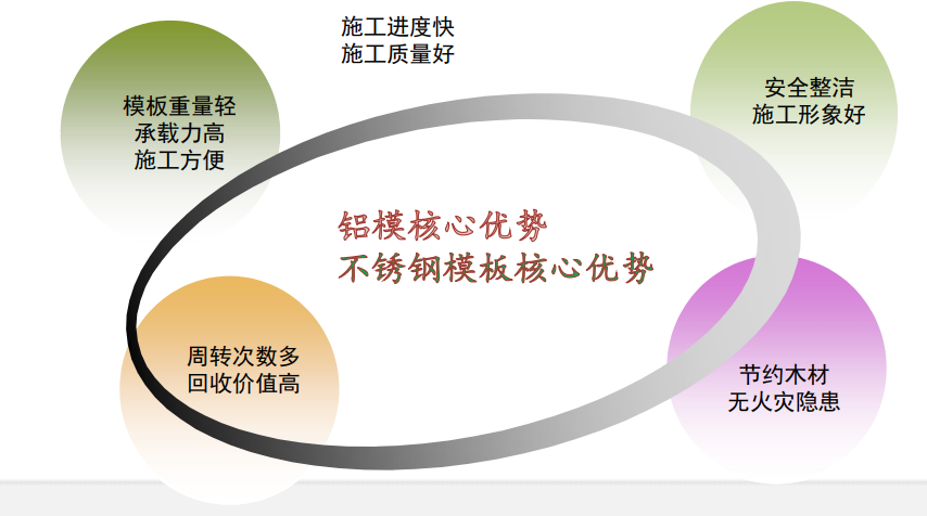1.整體澆筑、一次成型, 縮短工期(標準工期4-5天);保證建筑物的整體強度,周轉(zhuǎn)使用壽命可達300次以上。