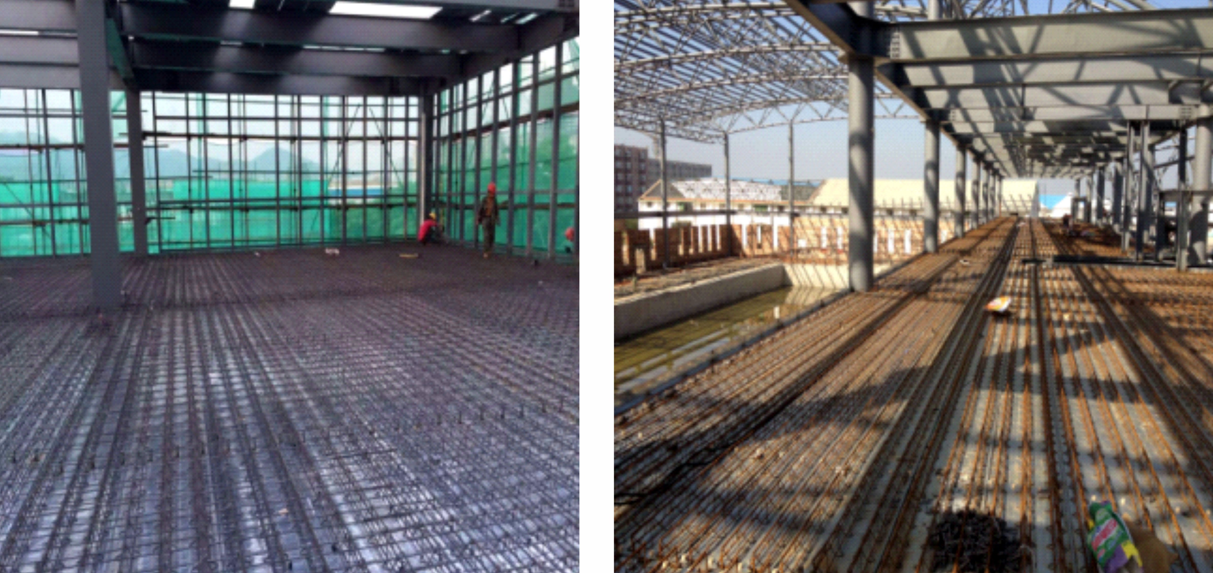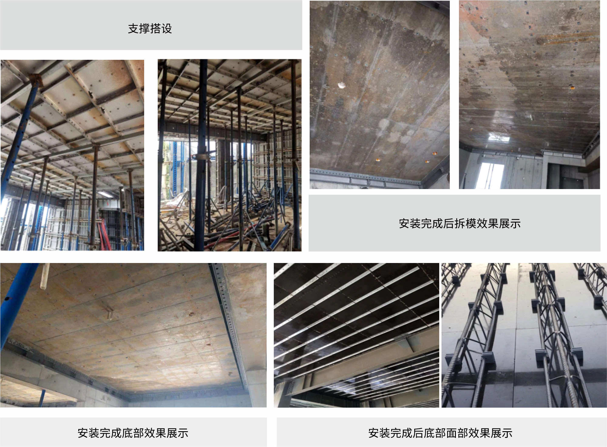 裝配可拆式鋼筋桁架樓承板,實際案例(龍湖集團浙江公司紫荊港項目)6-7 人一天可鋪裝1000㎡(見附圖二),可有效縮短工期比自承式樓承板的安裝 快百分之三十的速度,拆除比較方便,1400㎡ 的板面6人一天即可拆除完畢。 |