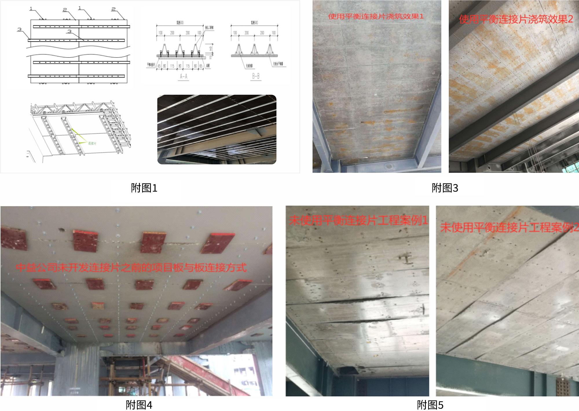 (3)從澆筑完后的效果對比:可拆式樓承板原來鋪裝完成后,在沒有連接片的時候采用的是下面用模板打 自攻螺絲,使板與板之間連接成一個整體平面(見附圖四),這樣的施工效 率低下,成本高, 澆筑后質(zhì)量不能保證,這是某公司無連接片澆筑混凝土后 的效果見(附圖五),所以自從中益/泰博的裝配可拆式鋼筋桁架樓承板的底 部連接片技術開發(fā)以后(中益/泰博自主研發(fā)的專利技術),底部每 400mm間 距的有一檔平衡連接片(見附圖一)交叉錯位連接,防止了板與板之間的錯位 ,使得板面之間能成為一個平面,保證了樓板底部的平整度,并且提高了施 工速度,質(zhì)量做到無需二次抹灰,可直 接移交裝修。(見附圖三)