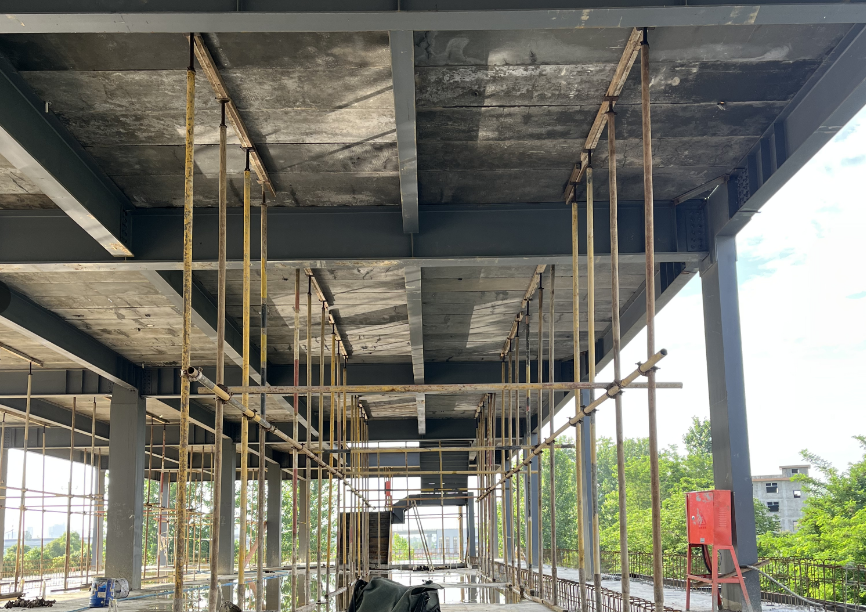 無支撐施工跨度大,現(xiàn)場澆筑時超出板型最大無支??缍葧r僅需在板跨中加設一道臨時支撐極大降低了現(xiàn)場支撐成本 |